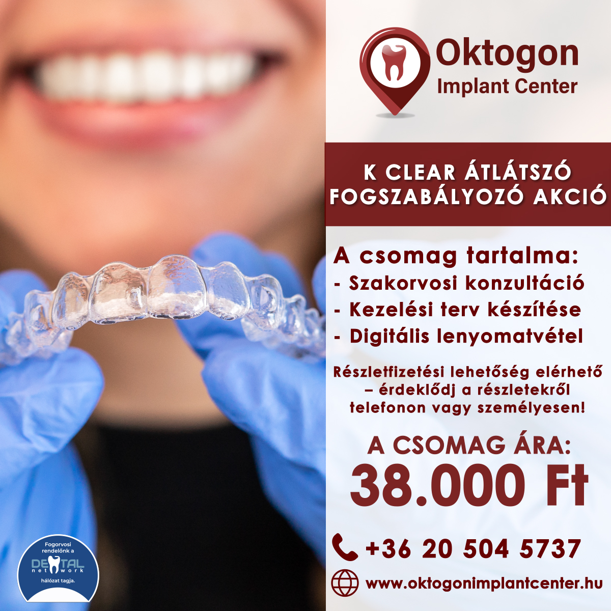 Időpontfoglaláskor hivatkozz a „K Clear átlátszó fogszabályozó csomag” kódra
