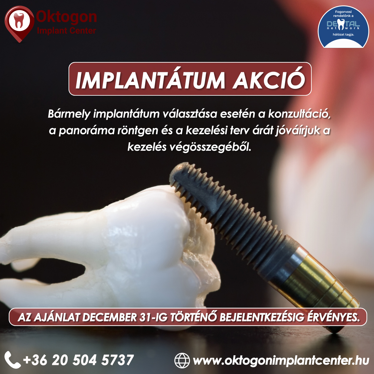 Időpont foglalásakor hivatkozzon az "Implantátum Akció" kódra, így érvényesíthető a kedvezmény.